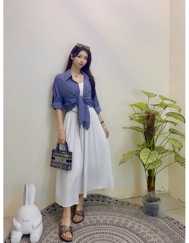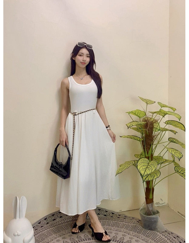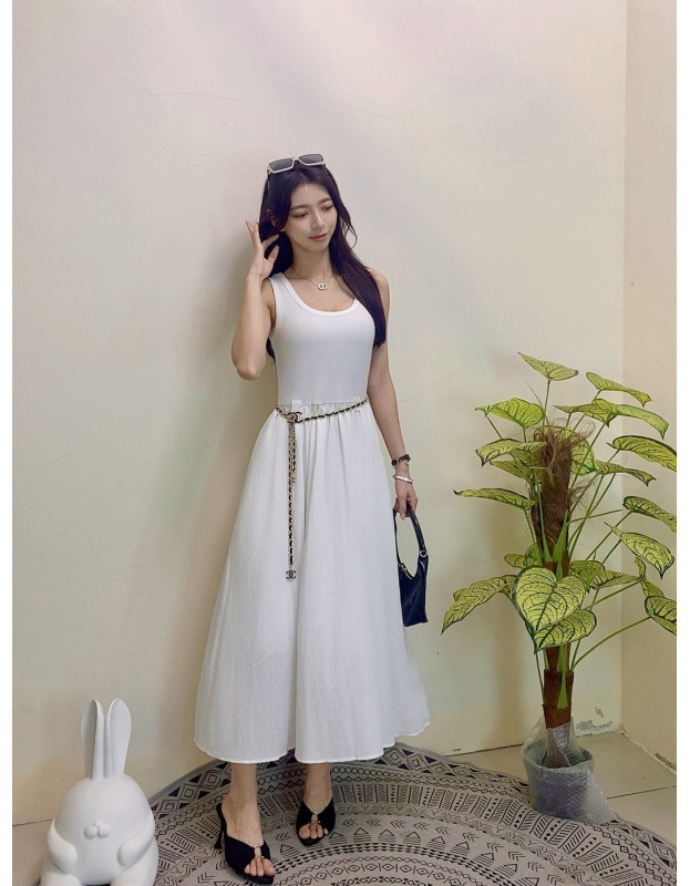 无袖设计清爽俐落,高腰线配金属腰链超显瘦!