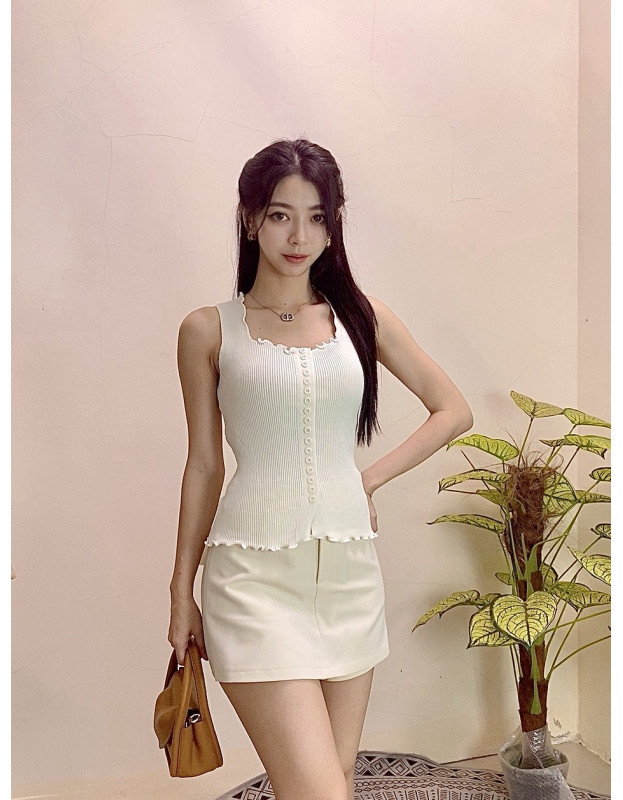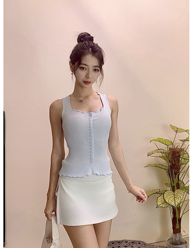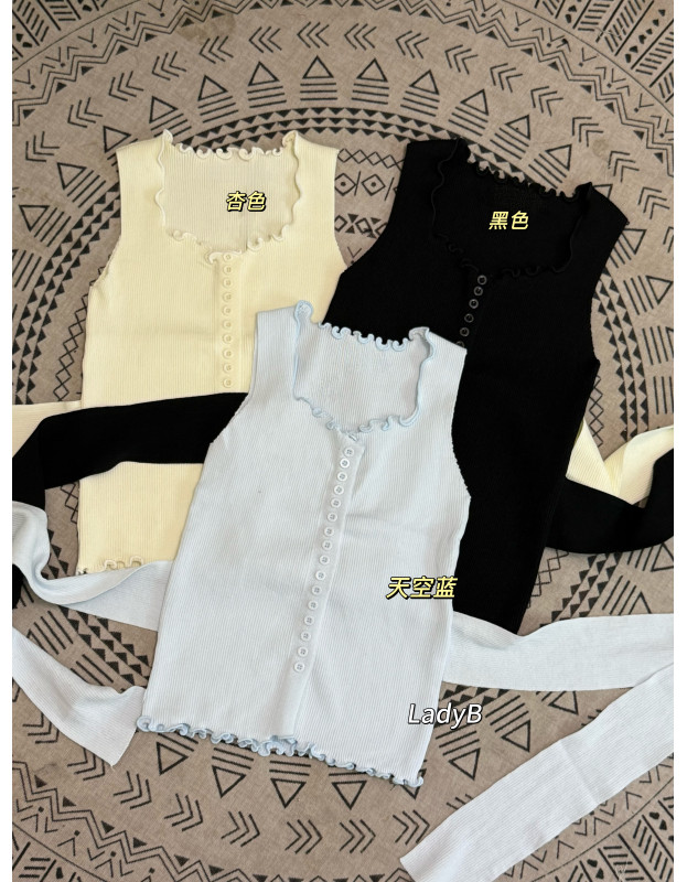 ✔️纽扣造型+荷叶木耳边领口,细节感加分????