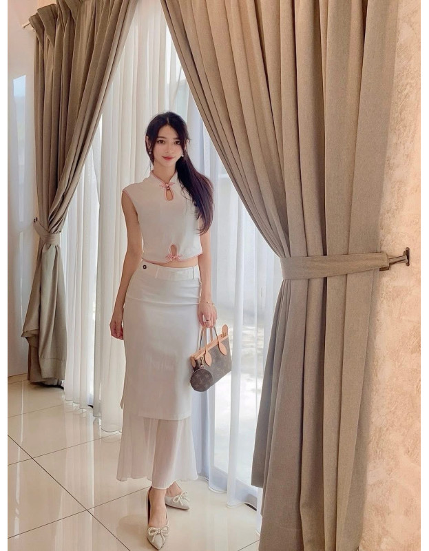 ???? 搭配旗袍式上衣,精致又带着一丝东方韵味。