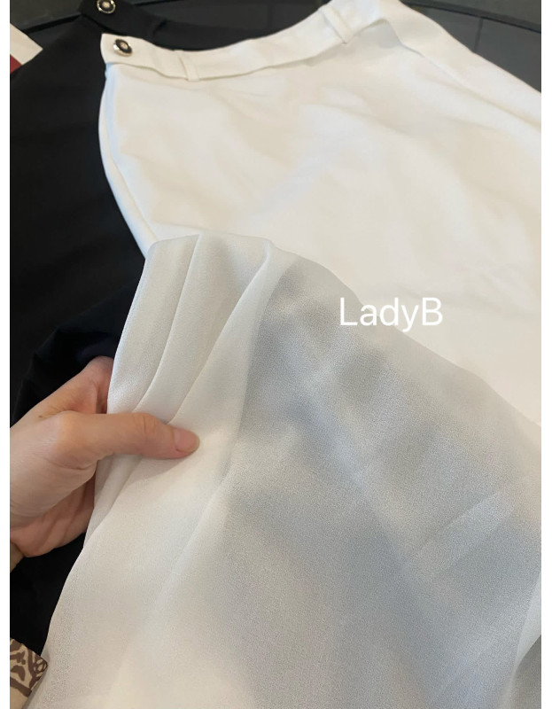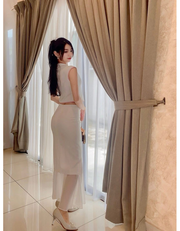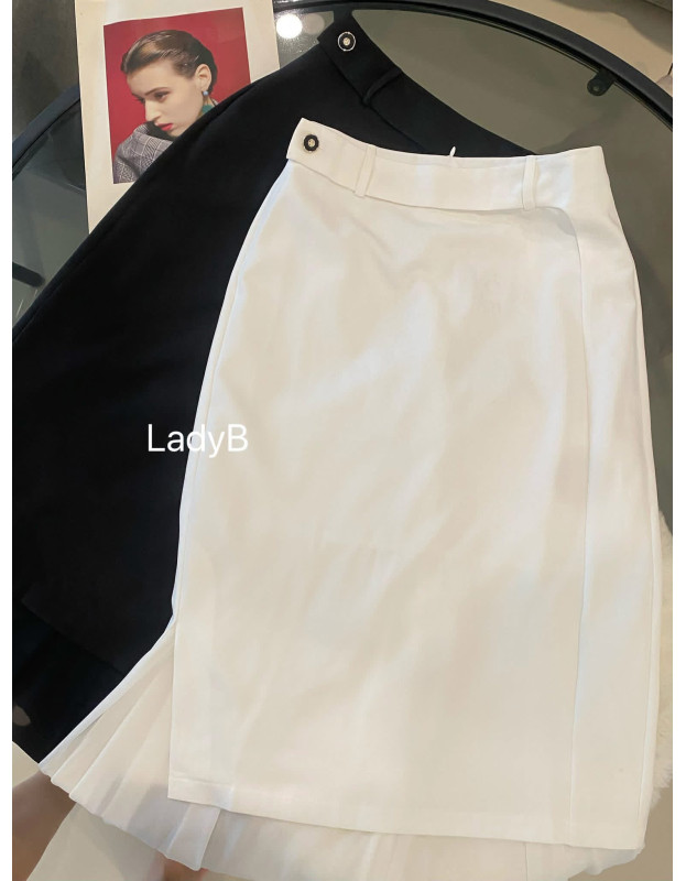 西装布拼接下围微透感欧根纱,质感与柔美并存,优雅到骨子里~
