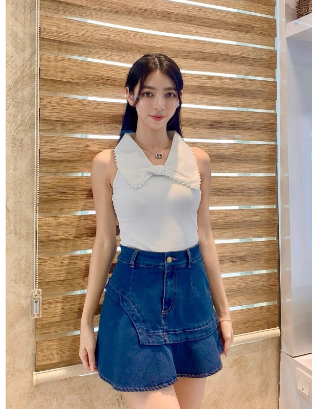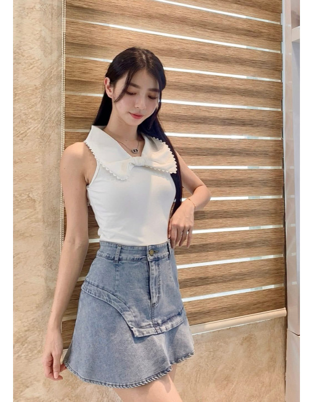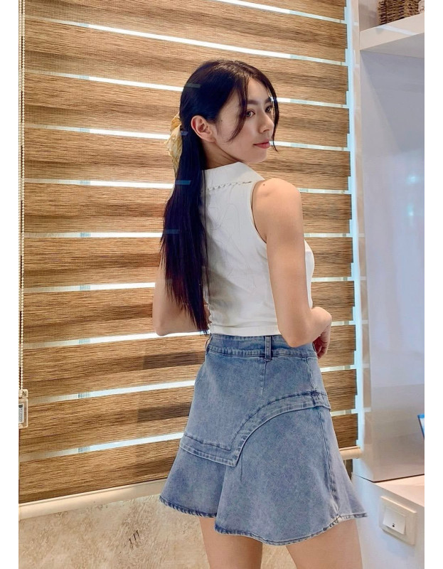 #牛仔裤裙 #A字裙 #荷叶边 #日常穿搭