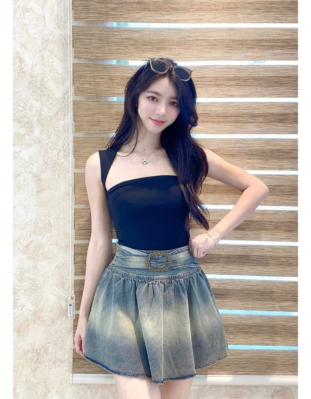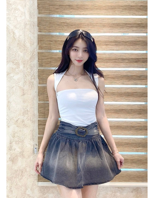 高腰设计拉长比例,A字伞摆修饰大腿,